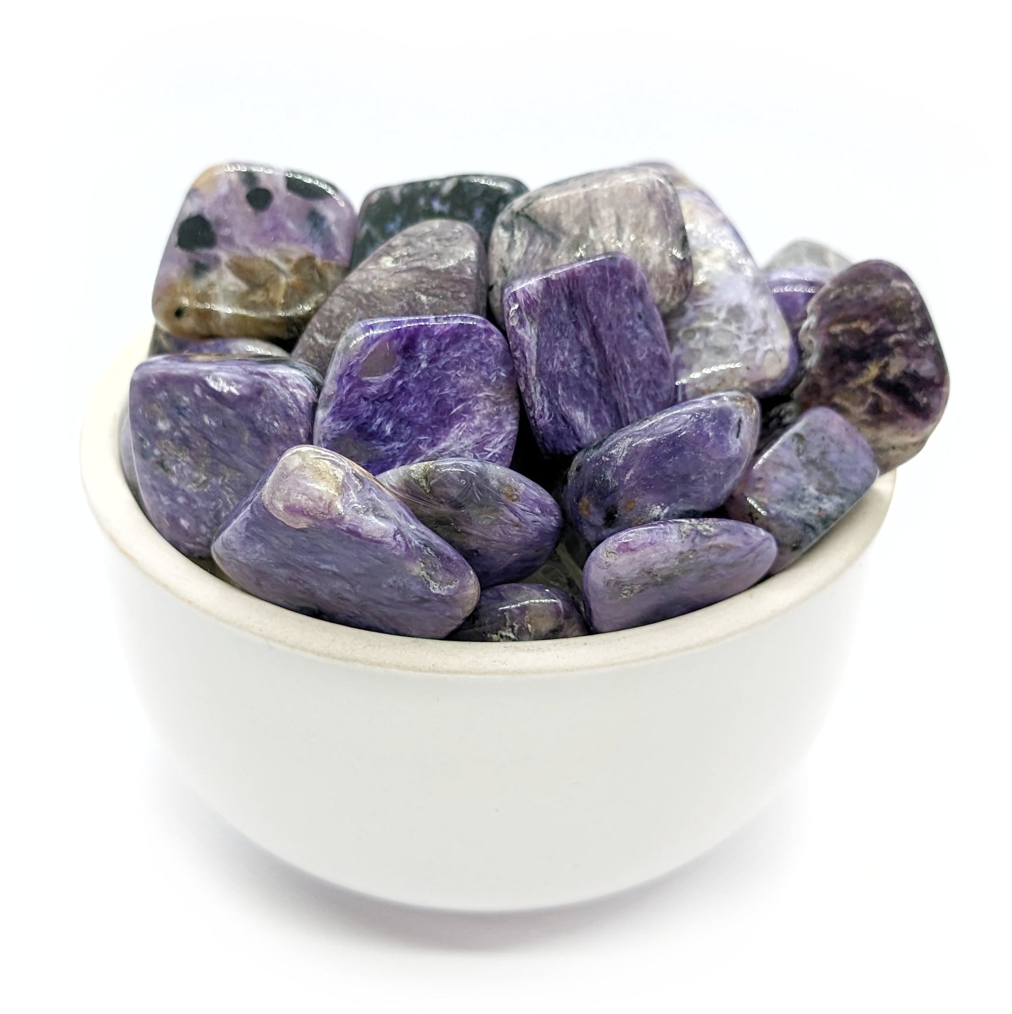 La charoïte aiderait à calmer les peurs profondes, les pensées envahissantes et la sensation de « trop plein » émotionnel.